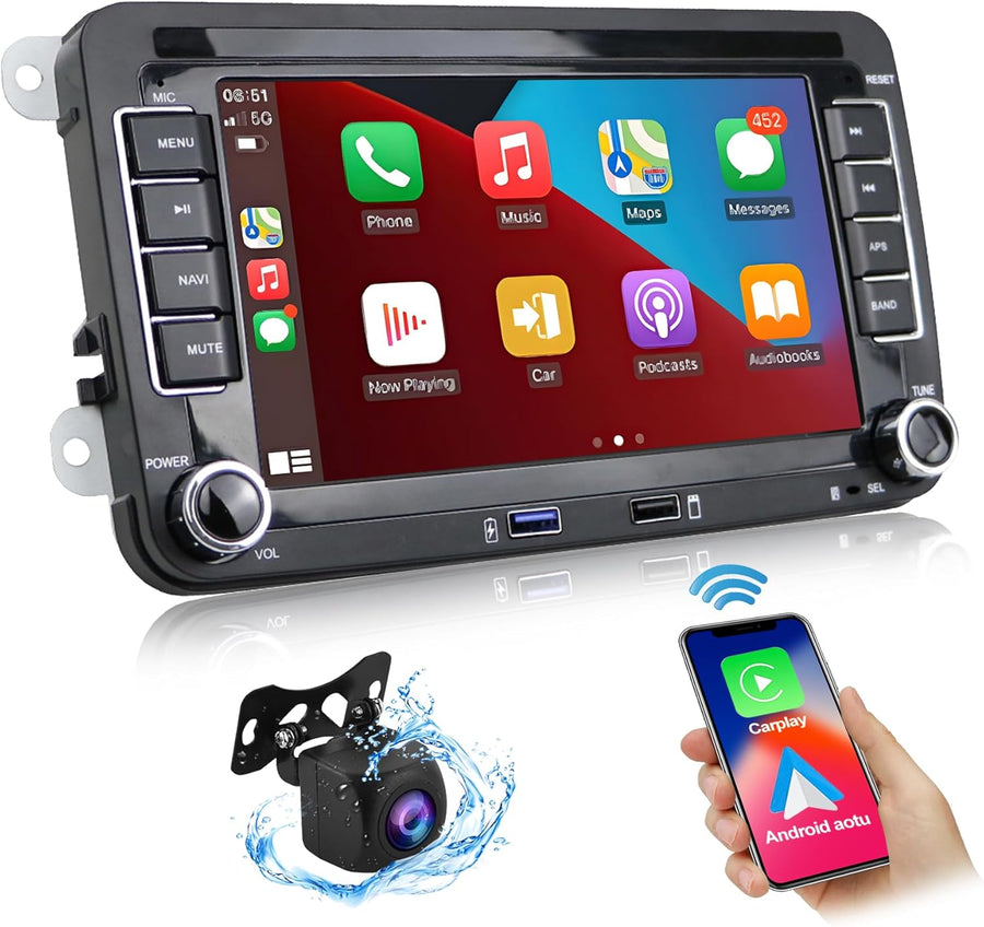 - 【Kabelloses CarPlay&Android Auto】Android 13 VW Autoradio bietet Ihnen 4 Möglichkeiten, sich mit Ihrem Telefon zu verbinden: kabelloses Apple-Carplay, kabelloses Android-Auto, kabelgebundenes Carplay und kabelgebundenes Android-Auto. Drahtlose