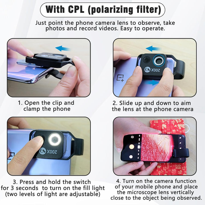 - Tragbar und Keine Installation Erforderlich: Smartphone mikroskop ist klein und kann problemlos in die tasche gesteckt werden. Sie können nano zoom für smartphone jederzeit verwenden, wenn sie unterwegs sind, und ihr smartphone ganz einfach in ein