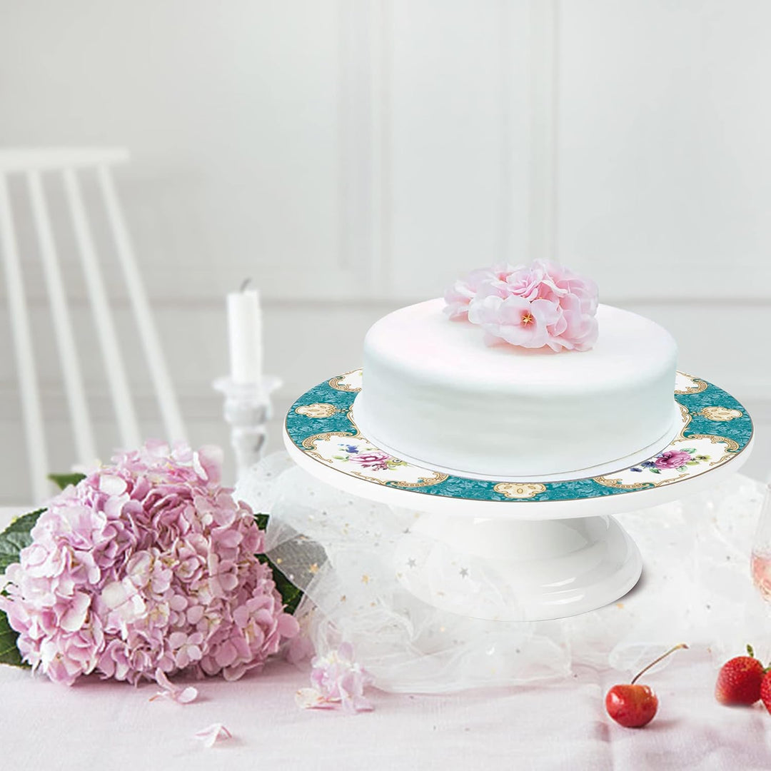 10 Zoll Blumen Porzellan Kuchenständer, Blaue Runde Kuchenplatte mit Goldrand, Dessert Dekorieren Ve