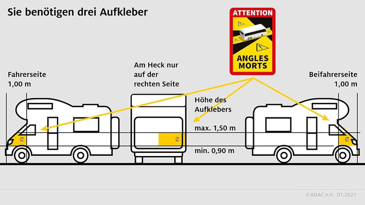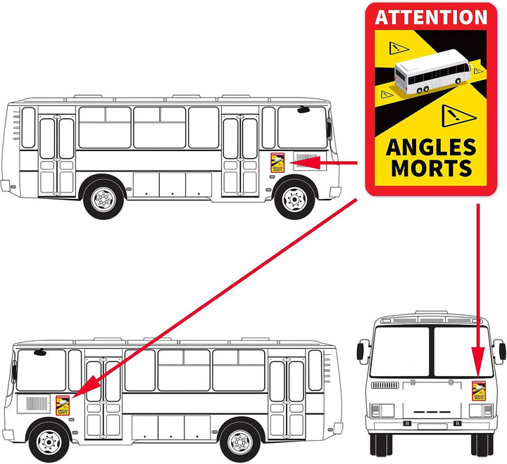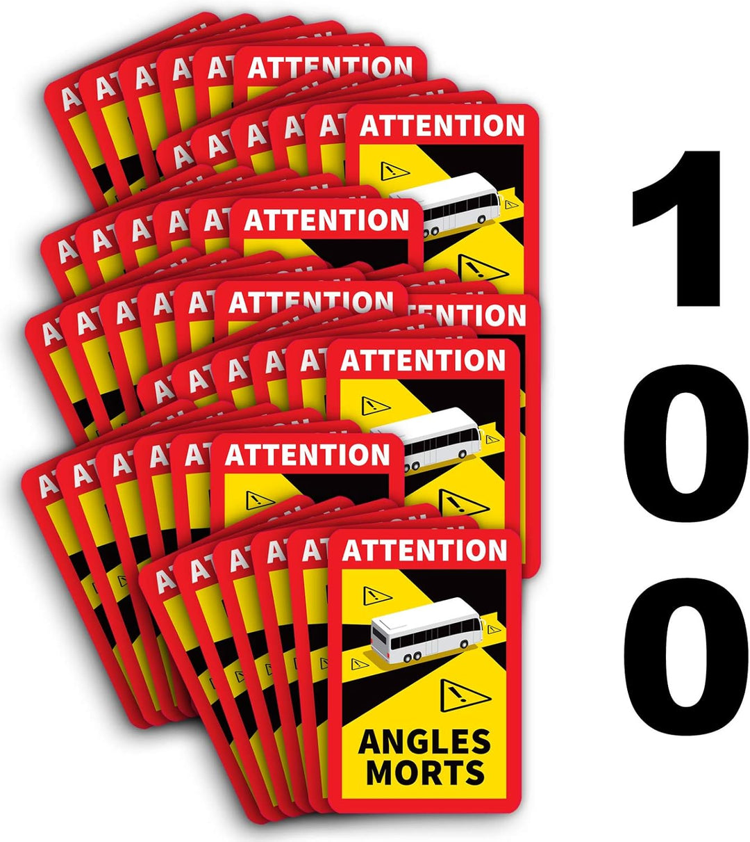 - 100 Stück Angle Morts für Bus Aufkleber / Toter Winkel Sticker mit geschlitzter Rückseite