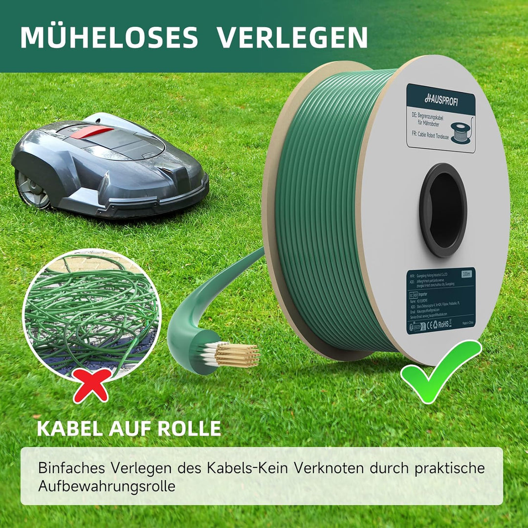 • [Universelle Kompatibilität]: Unser Begrenzungskabel ist mit allen gängigen Mährobotermarken wie Husqvarna, Robomow, Bosch, McCulloch, Yardforce, Worx und Viking kompatibel. Nutzen Sie die universale Lösung für Ihr Mährobotersystem. Sie können es