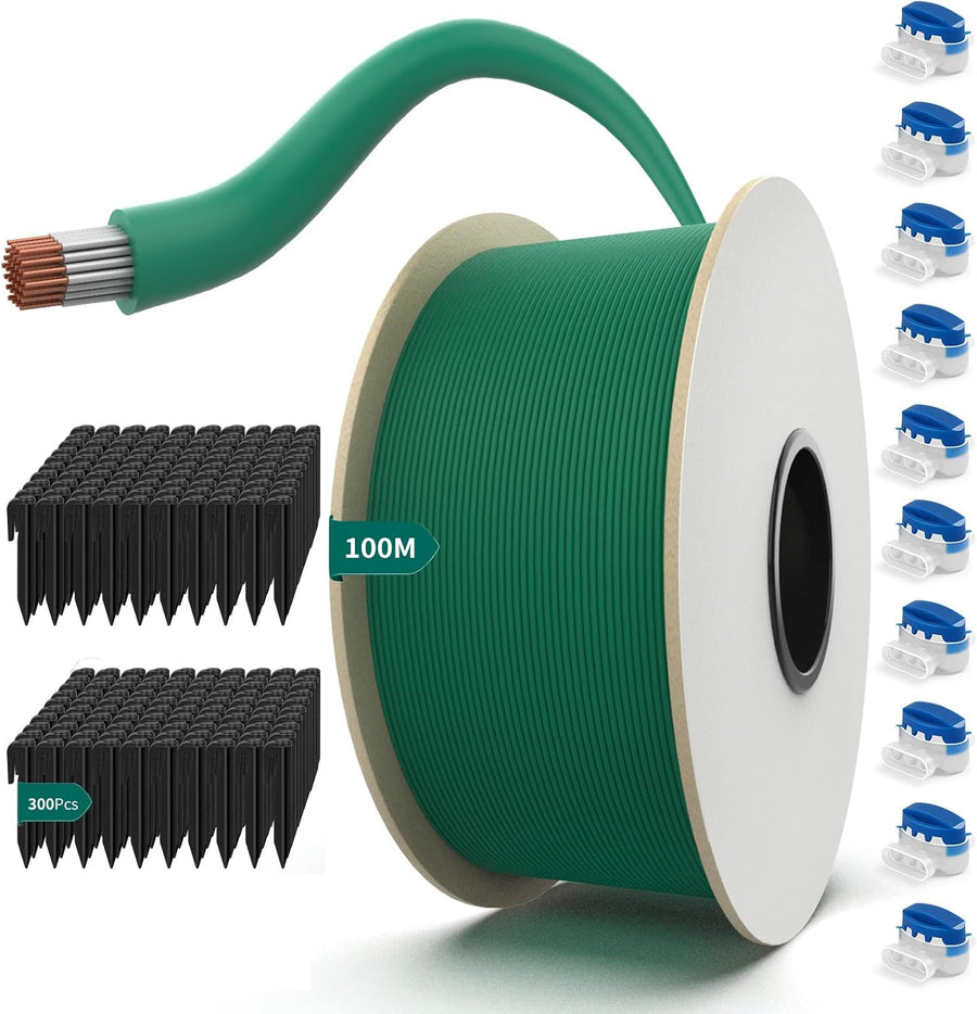 • Du wirst erhalten: 100M Universal Begrenzungskabel für Mähroboter * 1 Rolle, Erdspiess * 300, Klemmenblöcke * 10.