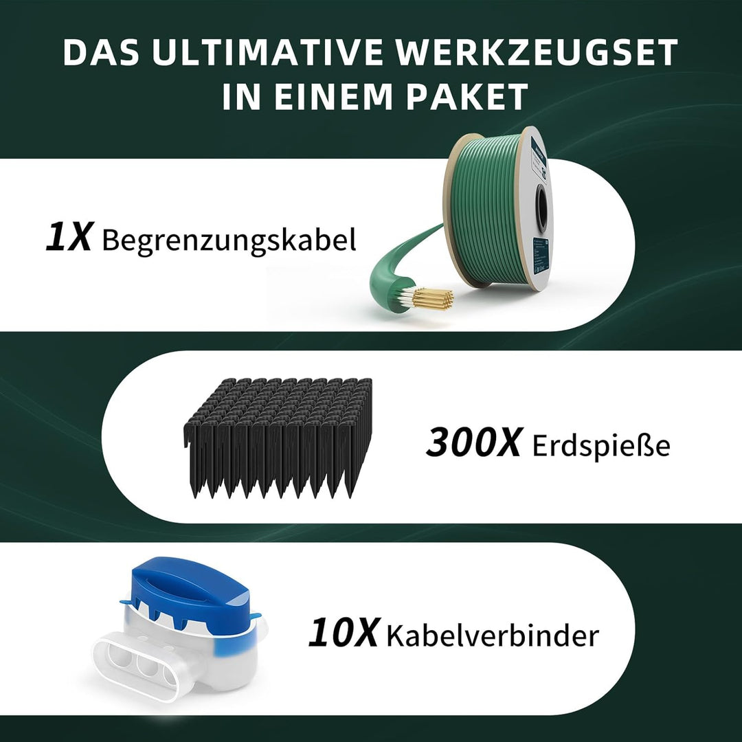 • [Umweltfreundlich und sicher]: Unser Mähroboterkabel besteht aus umweltfreundlichen Materialien und ist frei von schädlichen Chemikalien. Es ist sicher für Ihre Familie, Haustiere und die Umwelt. Die präzise Begrenzung durch das Kabel verhindert