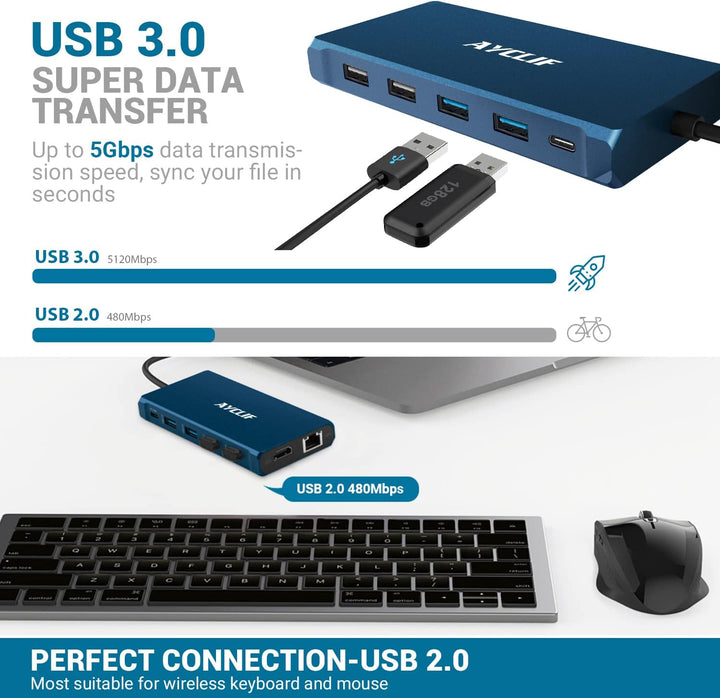 - 【7-in-1-Multiport-USB-C-Hub】Plug-and-Play. Dieser USB-C-Dongle benötigt keine Treiber, um den USB-C-Anschluss Ihres Laptops auf 4K @ 30Hz HDMI, 3 USB 3.0-Datenanschlüsse (2 Typ A und Typ C), schnell aufladbare 100-W-PD und