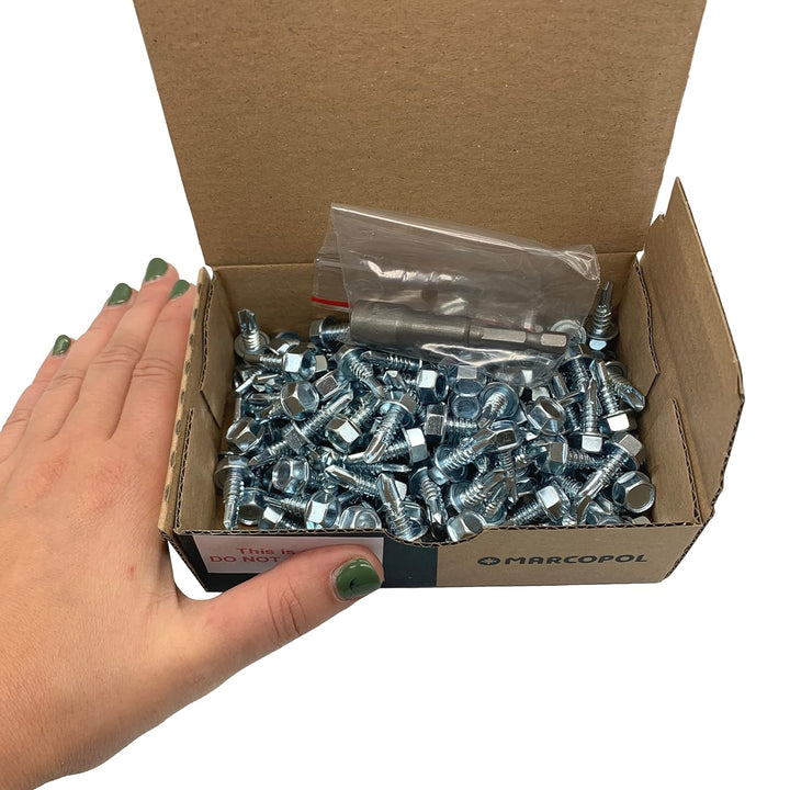 - ✔️ Sechskant-Unterlegscheibenkopf Diese Schrauben sind geeignet für: Blechbefestigung, Befestigung von Dachrinnen, Blechdachungen, Metallkonstruktionen, Fassaden usw. ;
