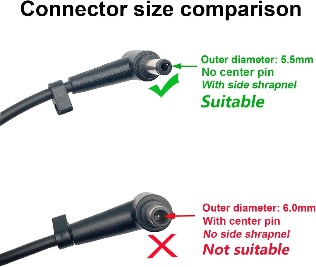 - Eingangsspannung: 100-240V~2,0A, 50-60Hz; Ausgangsleistung: 120W; Ausgangsspannung: DC 19V; Ausgangsstrom: 6,32A (19V 6,3A kompatibel); Steckergrösse: 5,5 x 2,5 mm