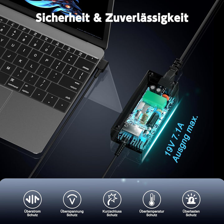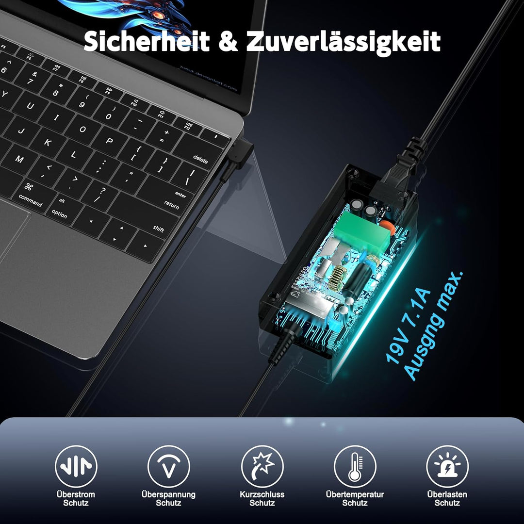 - ✅ Sie erhalten: 1 x 19 V 7,1 A Netzteil, 1 x Stromkabel, 30 Tage Geld-zurück-Garantie, 12 Monate Garantie, freundlicher Kundenservice rund um die Uhr! (Wenn Sie Fragen haben, zögern Sie nicht, uns jederzeit per E-Mail oder Fragen und Antworten zu