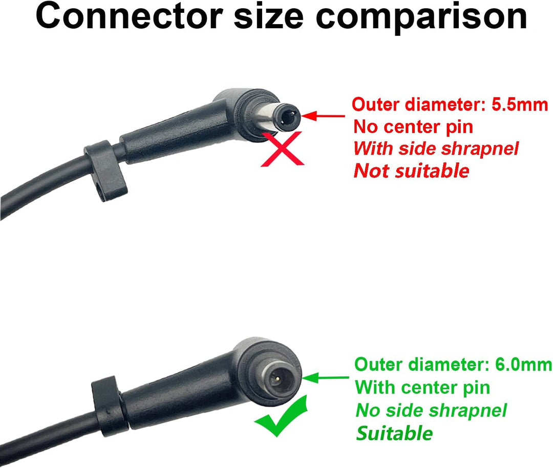 - Steckergrösse: 6,0 x 3,7 mm ! ! ! Wichtig: Die Grösse des DC-Steckers Ihres Ladegeräts muss zuerst bestätigt werden. Wenn die Grösse nicht mit unseren Bildern und Beschreibungen übereinstimmt, bitte nicht kaufen ! ! !