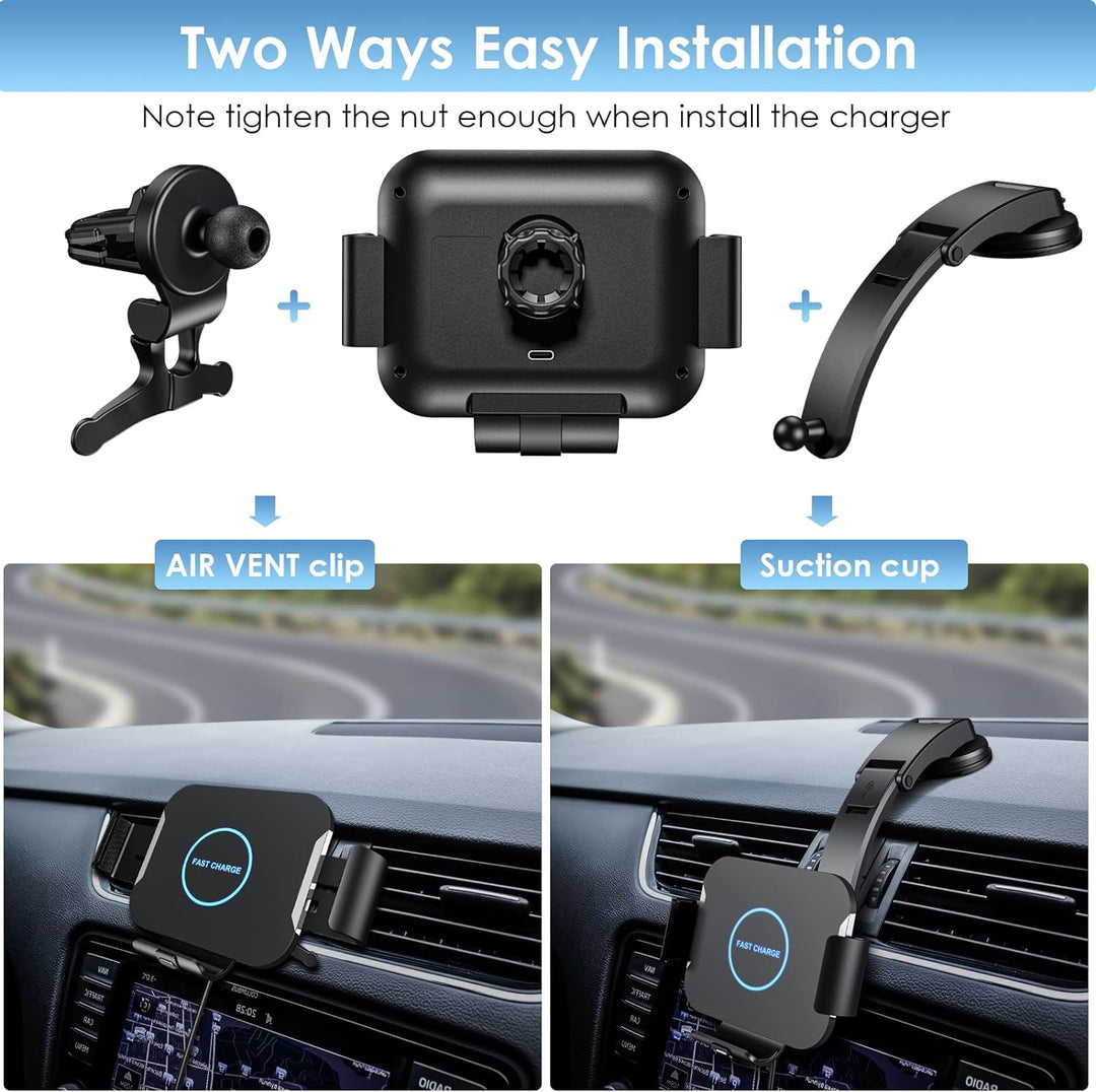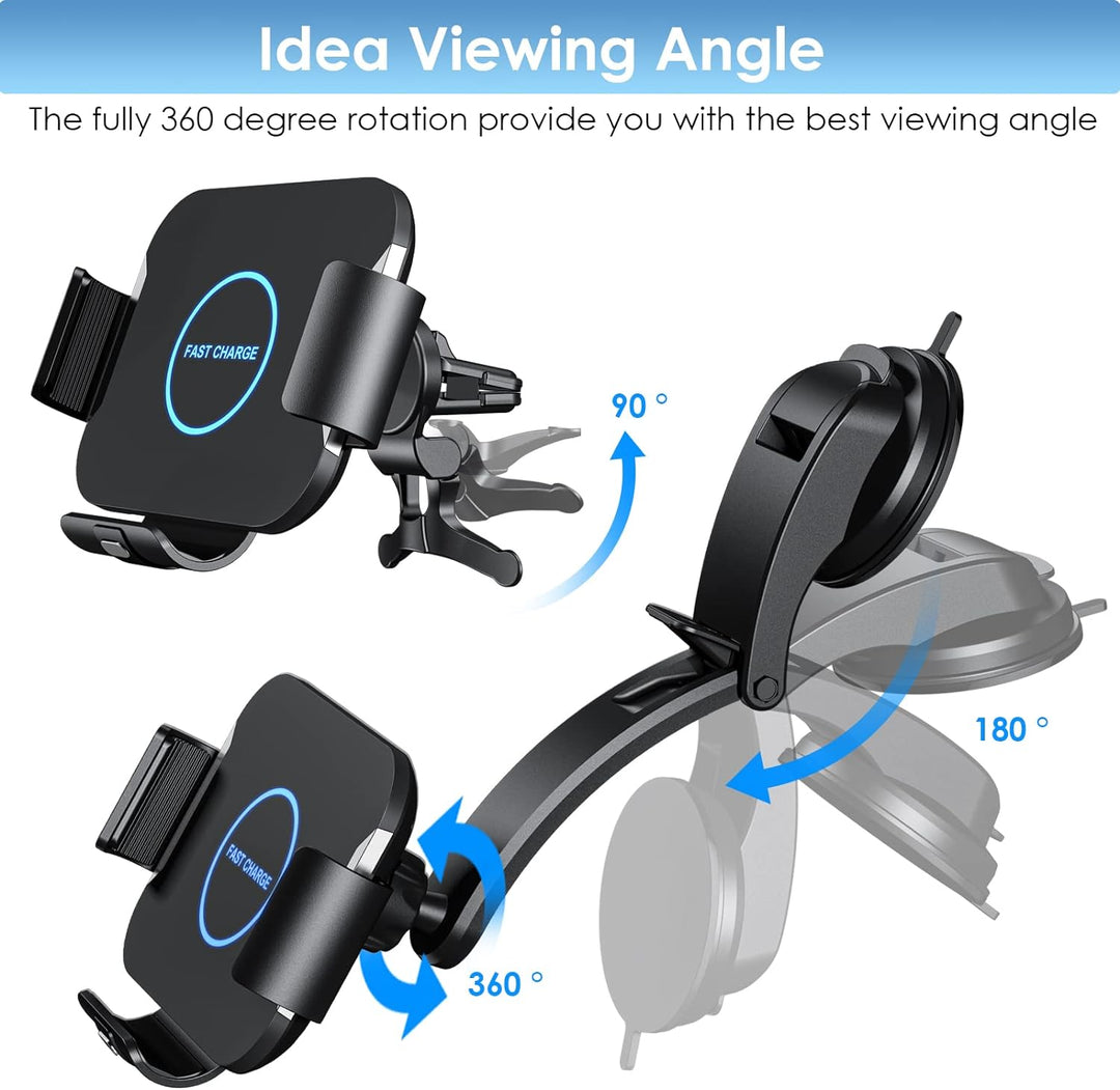 - Doppelte Installation – 2 Arten von Telefonhalterungen. Die Halterung für Kabelloses Autoladegerät Schnellladegerät kann mit dem starken Saugnapf sicher an der Windschutzscheibe, dem Armaturenbrett und dem Tisch angebracht werden. Kann auch mit der