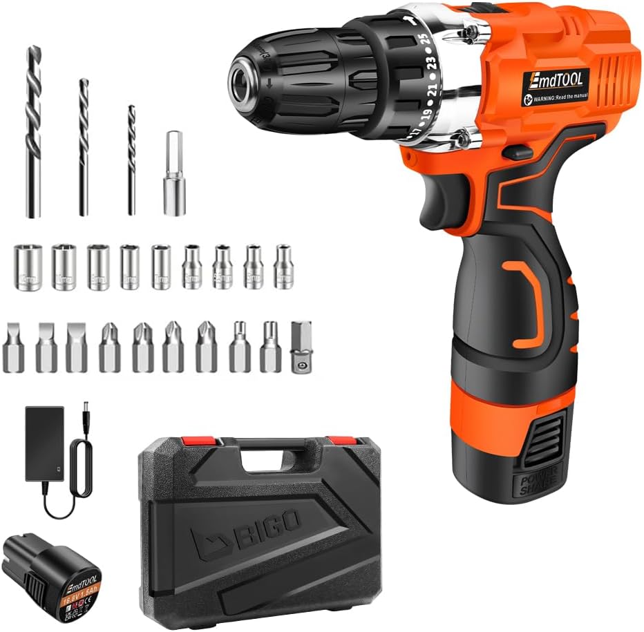 - 【3/8 "Schnellspannbohrfutter und Kupplung mit 18 + 1 Positionen】 -3 / 8 "(10 mm) Schnellspannbohrfutter mit automatischer Spindelarretierung hilft Ihnen, verschiedene Bohrer nach Bedarf einfach zu wechseln. akkubohrschrauber bietet ein maximales