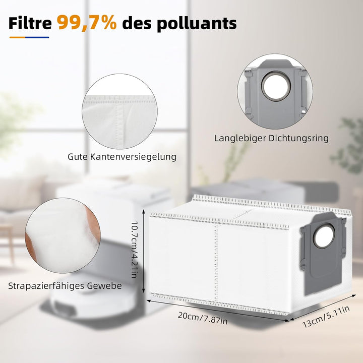 - 【Staubbeutel】2,7L grosses Fassungsvermögen können Staub bis zu 7 Wochen lang aufnehmen und 99,7% der in der Luft schwebenden kleinen Partikel auffangen.