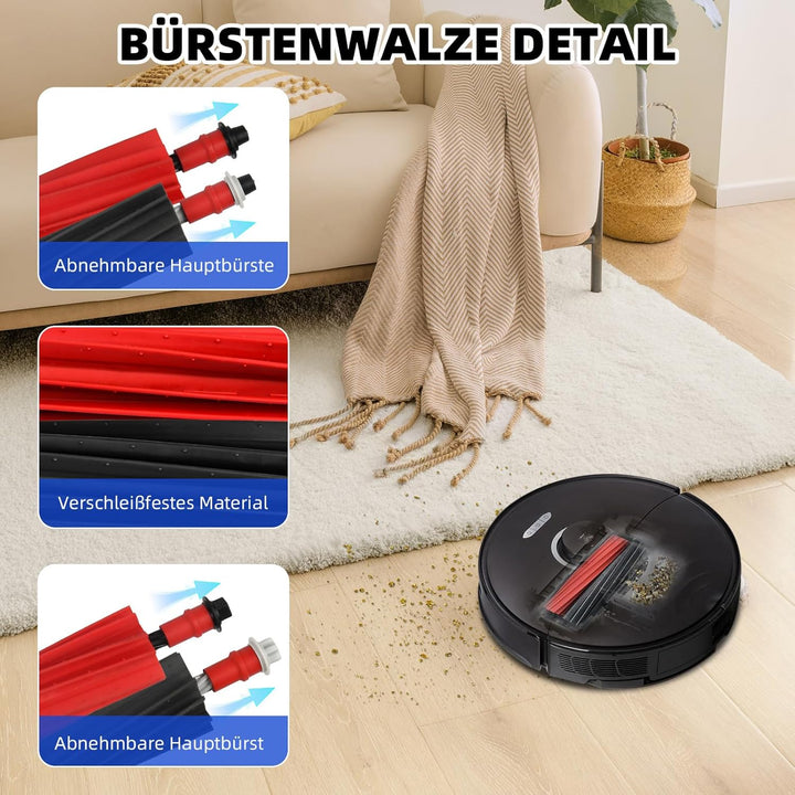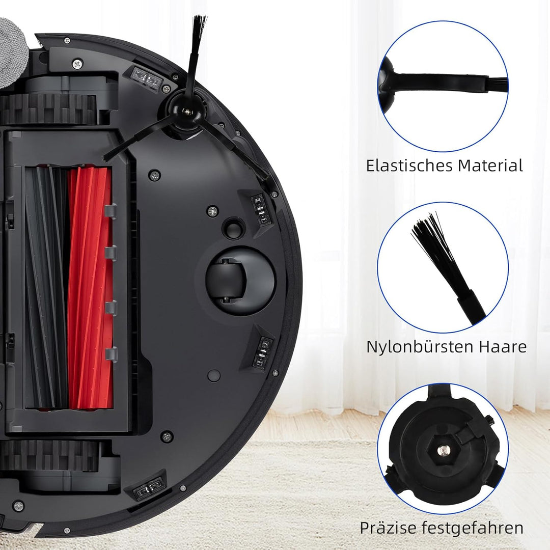 - 【Hauptbürste & Seitenbürste】Abnehmbare Gummi Gummirolle Hauptbürste, rastet schnell ein kann einfach ausgetauscht werden. Gummi 3-Arm-Seitenbürste adie Ecken und Kanten effektiver reinigt.