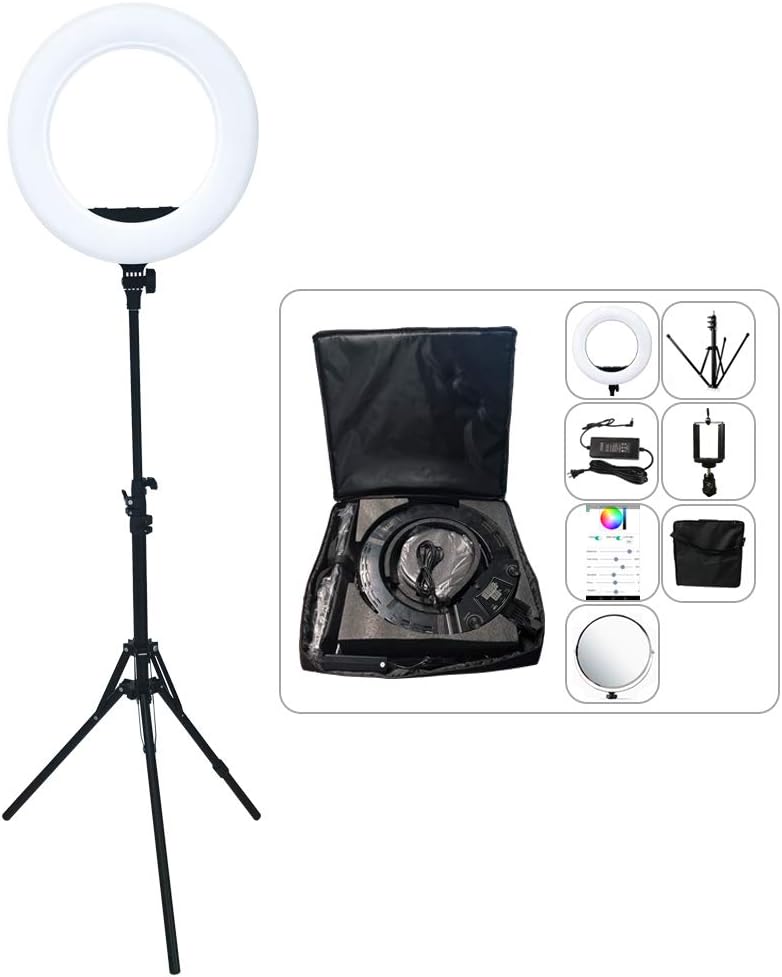 - Kommt mit einem Reisekoffer, leicht und tragbar, auch Blitzschuh Kamerahalter eingebaut für die meisten DSLR-Kameras, ein Telefonhalter für die meisten Smartphones enthalten, ein digitaler Bildschirm zu zeigen und zu justieren Leistung, Farbtemperatur.