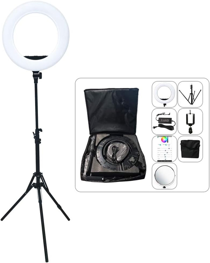 - Dimmbares 18" LED Ringlicht mit grossem Dimmbereich, einstellbare Höhe, Winkel, Drehung, etc. - sehr flexibel!