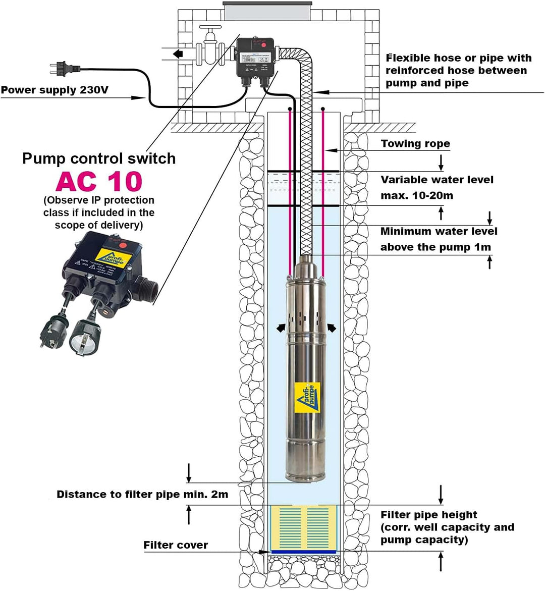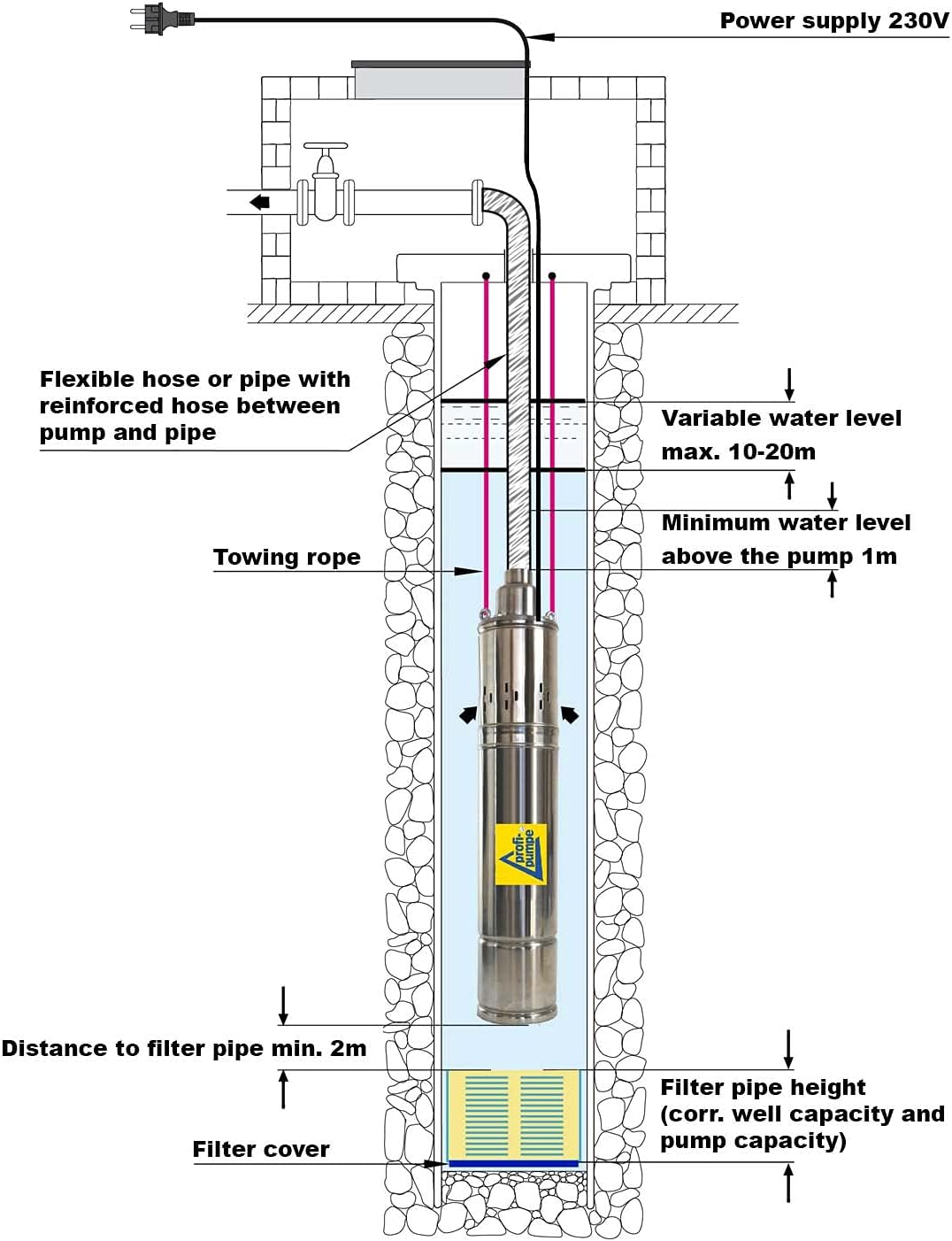 - SANDVERTRÄGLICHE 3"-BRUNNENPUMPE für ALLE Brunnen bis zu 110 m Tiefe und leichtem bis mittlerem Sandaufkommen (max 250gr/cbm, max. 0,25%)