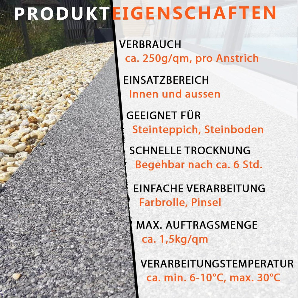 - Zusatzprodukte: BK-590 Marmorkiesel, BK-600EP Steinteppich Set, LS-711 Verdünnung, BK-633PU Bindemittel für vertikale FLächen