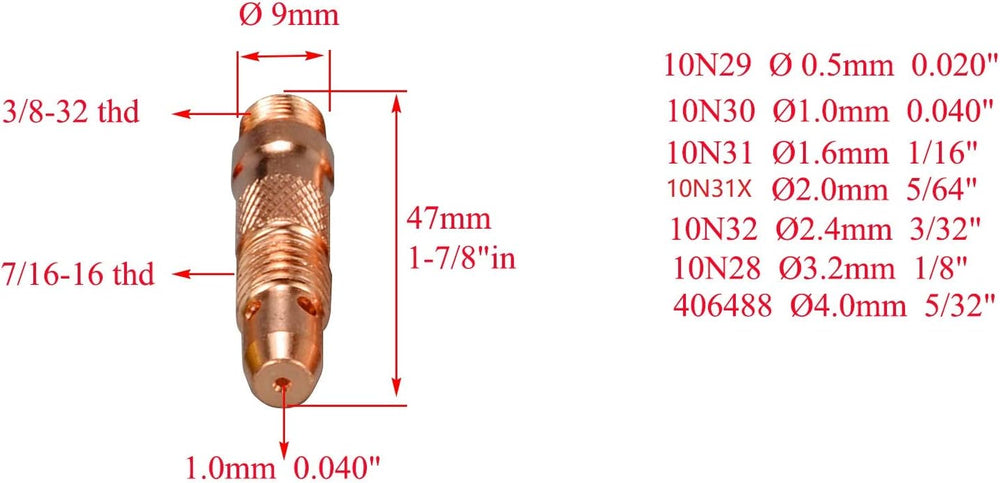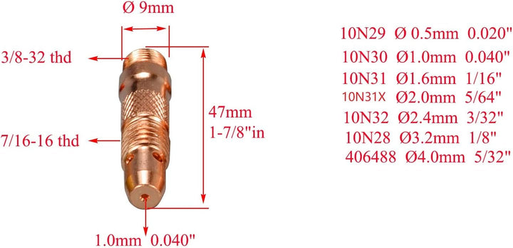 - 8 Stück WIG-Spannzangen und 8 Stück WIG-Spannzangenkörper