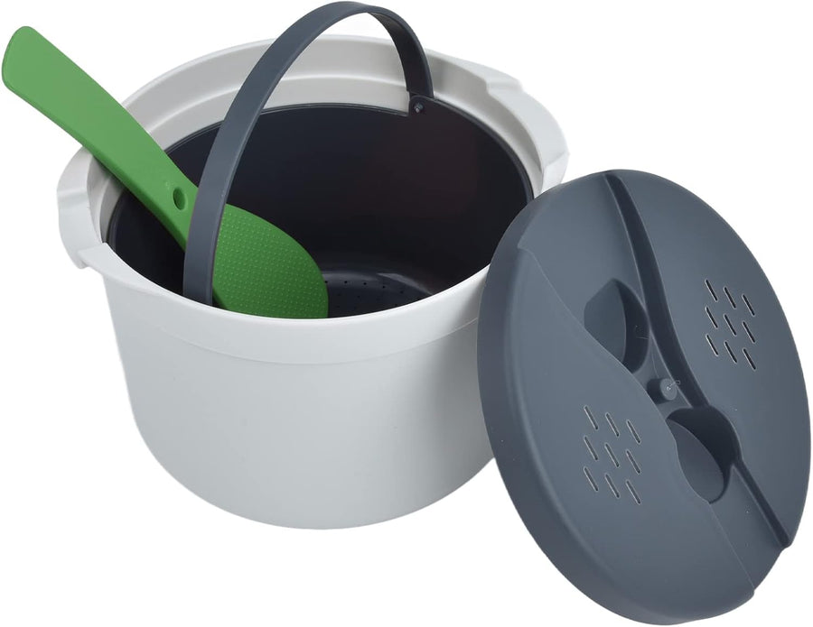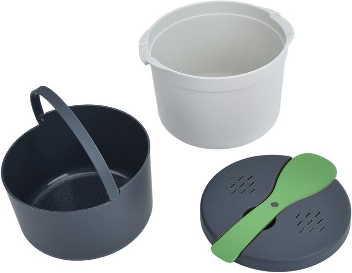 - [Komplettset] Beinhaltet Reislöffel, Deckel, Sieb und Dampftopf für alle Mikrowellengrössen.