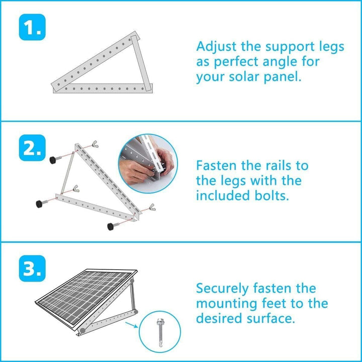 - Anwendung: Verstellbare Solarpanel-Halterungen für netzunabhängige Solaranlagen, wie RV, Marine, Wohnmobil, Dächer, Schuppen oder andere flache Oberflächen.