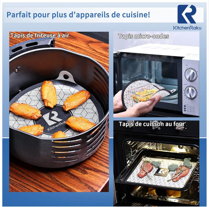 - PERFEKT FÜR MEHR KÜCHENGERÄTE - Diese multifunktionalen Silikonmatten können als Heissluftfritteuse, Mikrowellenmatte und Ofenbackmatte verwendet werden. Das Set aus 2 Matten kann Ihnen helfen, mehr Funktionen wie Untersetzer, Tischset, Topflappen,
