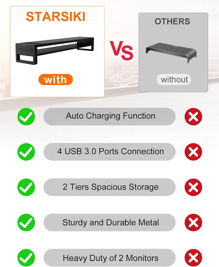 - 【Geräumiger 2-stufiger Speicherplatz】Unser Doppel-Monitorständer bietet dank des 2-stufigen Designs zusätzlichen Platz auf Ihrem Schreibtisch. Verstauen Sie Tastaturen, Mäuse, Tablets, Festplatten, Notebooks und vieles mehr griffbereit unter