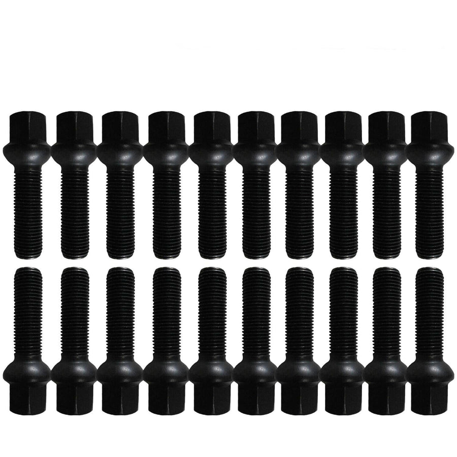- 20 Radschrauben Radbolzen schwarz Kugelbund R14 M14x1,5 60mm kompatibel mit VW, Porsche, Audi, Mercedes