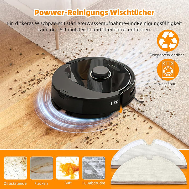 - 🔧【Wischtücher & Hepa-Filter】Mikrofaser-Mopp mit ultrastarker Reinigungsfähigkeit kann Ihr Zimmer effektiv reinigen. Der HEPA-Filter besteht aus hochfesten, umweltfreundlichen Materialien, die den grössten Teil von Staub und Schmutz blockieren