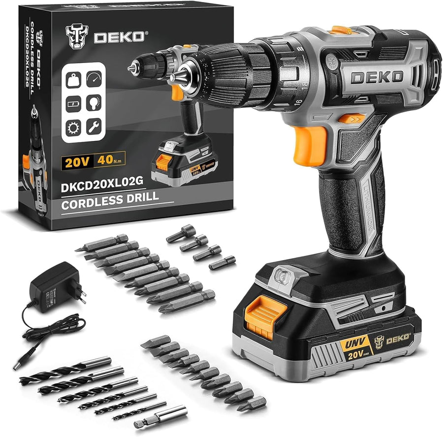- 【Bohrer mit Bohrer】 Dieses Bohrer-Set beinhaltet 1 x 20 V Akku-Bohrer; 1 x 1,5 Ah Akku; 1 x Ladegerät; 10 x Bits (SL3-SL4-SL5-SL6-SL7-PHO-PH1-PH2-PH2); 1 x Magnet-Bithalter (60 mm); 10 x Schraubendreher-Bits; 6 x Spitze Bohrer; 4. * Steckschlüssel;
