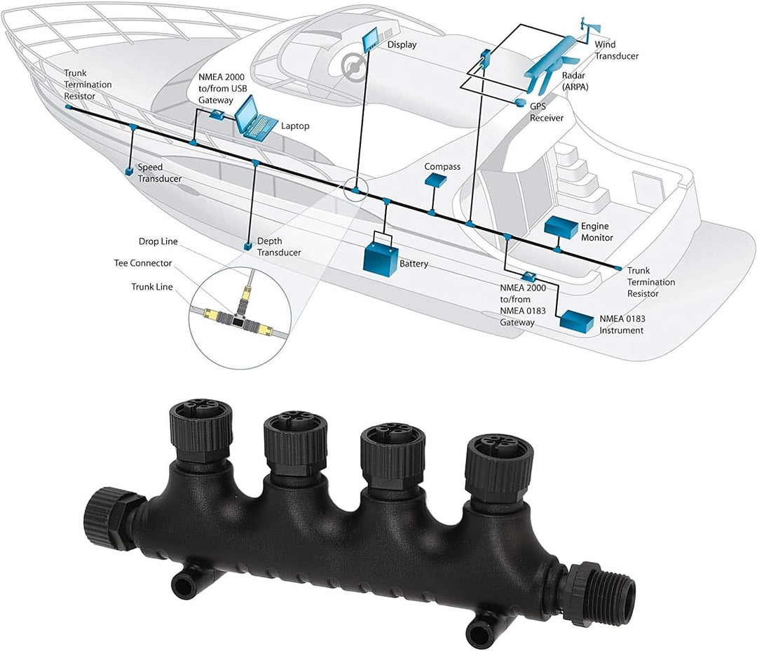 - Funktion: Der Multiport-T-Stecker für NMEA 2000 ist speziell für NMEA 2000-Backbone-Systeme und den ordnungsgemässen Abschluss eines NMEA 2000-Netzwerks konzipiert.