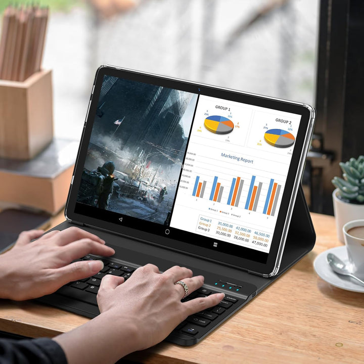 - 👍【Tablet und Laptop 2 in 1】ANTEMPER Android 12 Tablet bietet einen 2-in-1 professionellen Arbeitsmodus mit einer Bluetooth-Tastatur, Maus und einem faltbaren Gehäuse, das sehr einfach einzurichten und anzuschliessen ist, und Sie können leicht