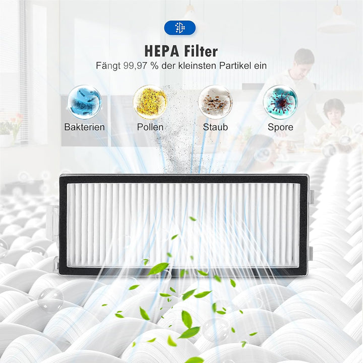 - 【HEPA-Filtration】 Der Filter blockiert und versiegelt 99,97 % des Staubs, der Haare und winzigen Partikel und gibt so frische Luft gleichmässig frei. Um die beste Leistung und Lebensdauer des Staubsaugers zu gewährleisten, reinigen und ersetzen Sie