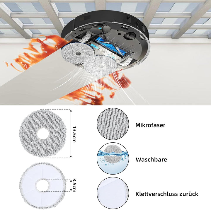 - 💿【Mopp Wischtücher und Filter】Das Wischpad ist weich und dick, die Chenille-Reinigungsoberfläche mit hochgedrehtem Flor haftet vollständig am Boden, um die Flecken gründlich zu reinigen. Der Filter besteht aus ABA-Material und Aktivkohle, kann