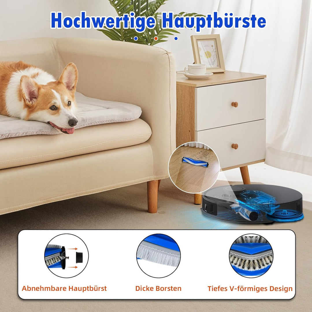 - 🏆【Rollbürste & Seitenbürste】Die Hauptbürste hat dichte Borsten, rastet schnell ein und kann schnell und einfach ausgetauscht werden. Die Seitenbürste verfügt über weiche Borsten für eine gründliche Reinigung an Kanten und Ecken.