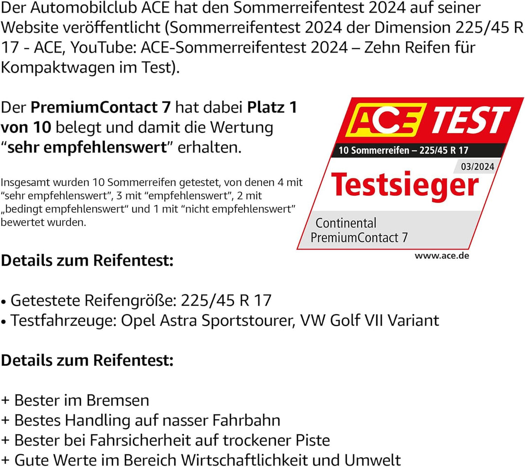 PRODUKTBESCHREIBUNGEN Angeboten wird 1x Reifen der Marke CONTINENTAL in der Grösse 225/45 R17 mit dem Profil PREMIUMCONTACT 7. Der Reifen ist aus aktueller Produktion und maximal 36 Monate alt gemäss BRV-Angabe. Die MCPNEU GmbH garantiert als Ihr langjähriger Reifenspezialist die sach- und fachgerechte Lagerung des Reifens und hochwertige Qualität zu besten Preisen.