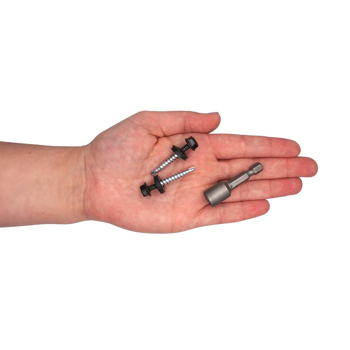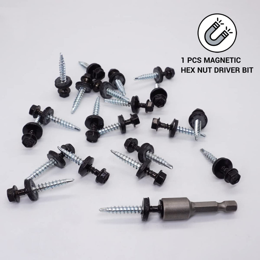 - ✔️ Verpackung: 250 Stück Schrauben Grösse: 4,8 x 35 mm Schraubenkopf und Unterlegscheibe Farbe: Tiefschwarz (RAL 9005) 1 x magnetischer Sechskantmuttern-Treiber-Bit ist im Lieferumfang enthalten. DIN 7504-K Norm