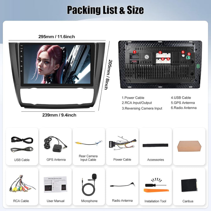 - 🚖Doppel Din Radio mit 9-Zoll-Bildschirm, Android 13, 8-Core-Chip, 2GB RAM,64GB ROM.Autoradio für BMW E81 118d/130i/118i/120i(2006-2011);für BMW E81 116i/120d/123d(2007-2011);für BMW E81 116d(2008-2011);für BMW E87 116d(2011);für BMW E87 116i(