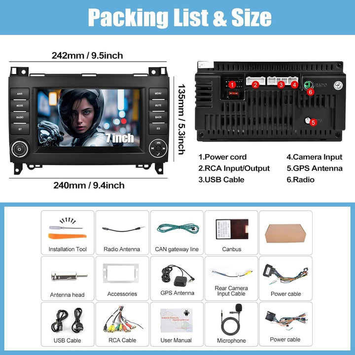 - 【AUTORADIO CAMECHO für Mercedes-Benz】Einfach zu installierenes Doppel-Din-Autoradio für Mercedes Benz A-Klasse W169 A150/A160/A170/A180/A200 (2004-2012),für Mercedes Benz B-Klasse W245 B160/B170/B180/B200 ( 2004-2012), für Mercedes-Benz V-Klasse