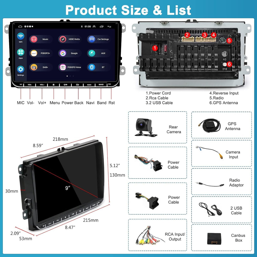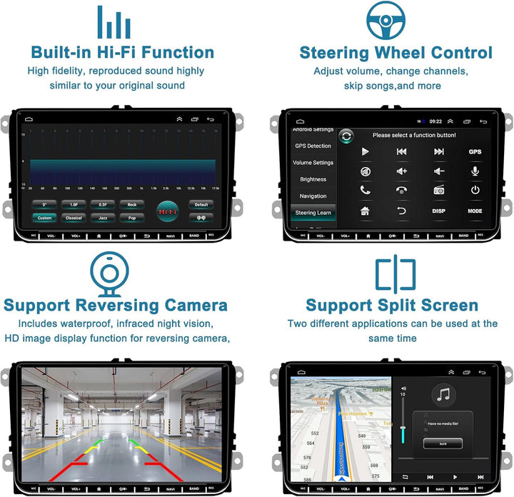 - Wireless CarPlay und Android Auto: Das Autoradio für Golf 5 unterstützt IOS/Android Handys. Benutzer mit Carplay/Android Auto können sich über USB/WIFI mit dem Fahrzeugsystem verbinden (unterstützt die drahtlose Android Auto-Verbindung, die von den