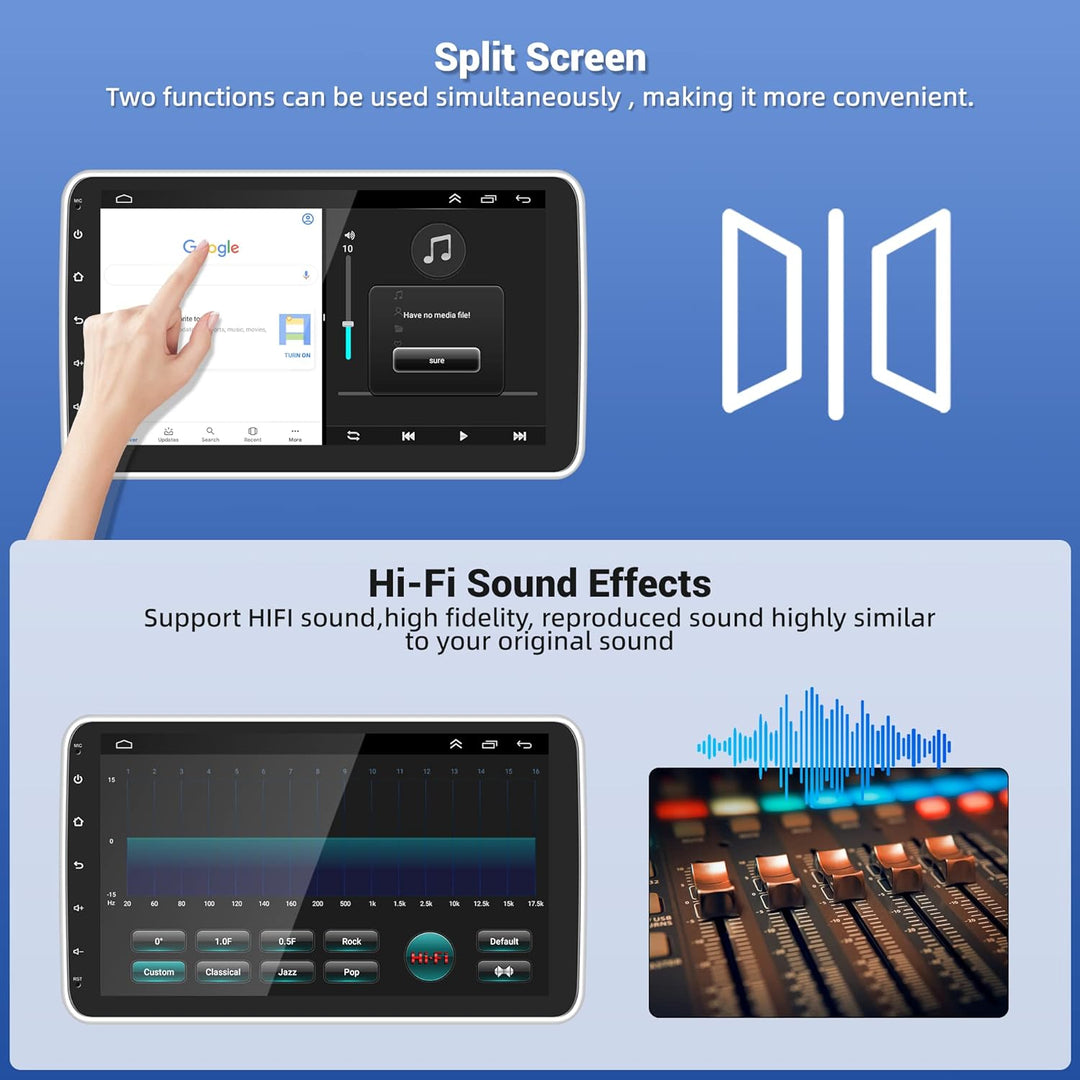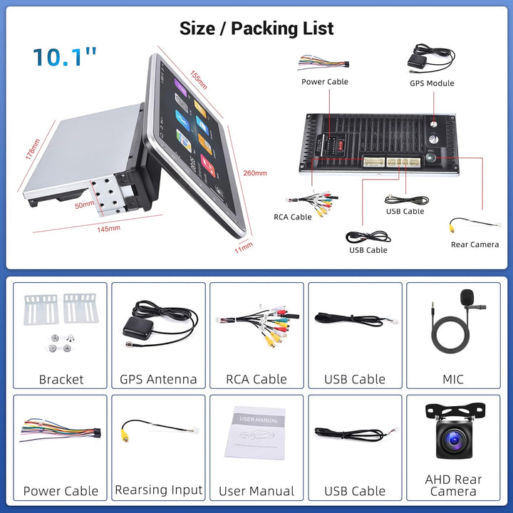 - 1️⃣【2G+32G 10.1 Zoll Drehbares Touchscreen Android 11.0 Autoradio 1 Din 】Dieses Android Autoradio 1 din mit 10.1 Zoll High Definition 2.5D Mirror Tempered Glass Touchscreen kann um 180° gedreht werden. Speicher 2 GB (RAM) + 32 GB (ROM).Die