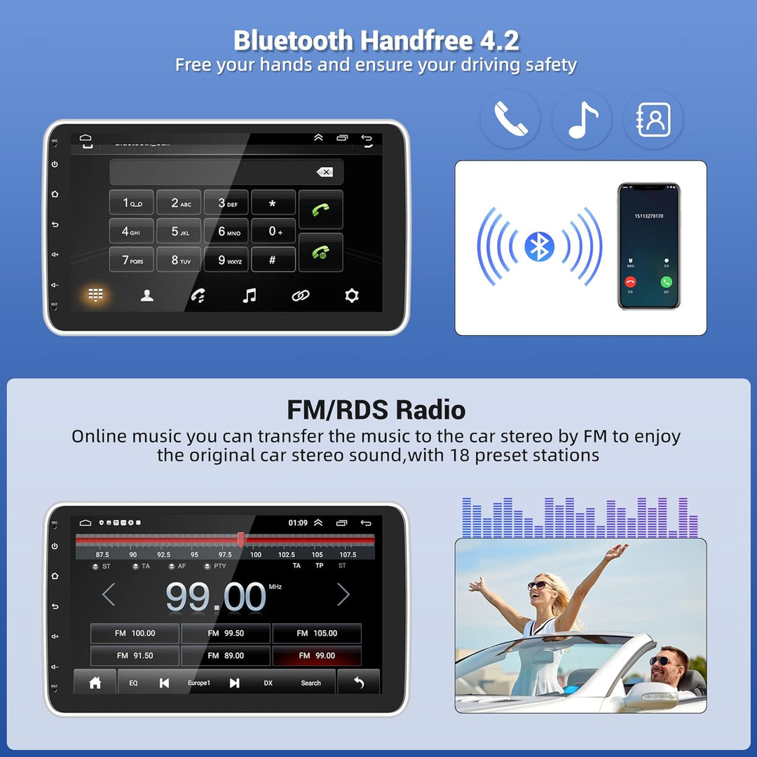 - 4️⃣【Bluetooth & FM/RDS Radio】1 Din Android Autoradio mit Bluetooth 4.0. Autoradio mit integriertem Mikrofon und Lautsprecher, kann Freisprechanrufe tätigen und Bluetooth-Verbindung zum Mobiltelefon zum Abspielen von Musik. Unterstützen FM /