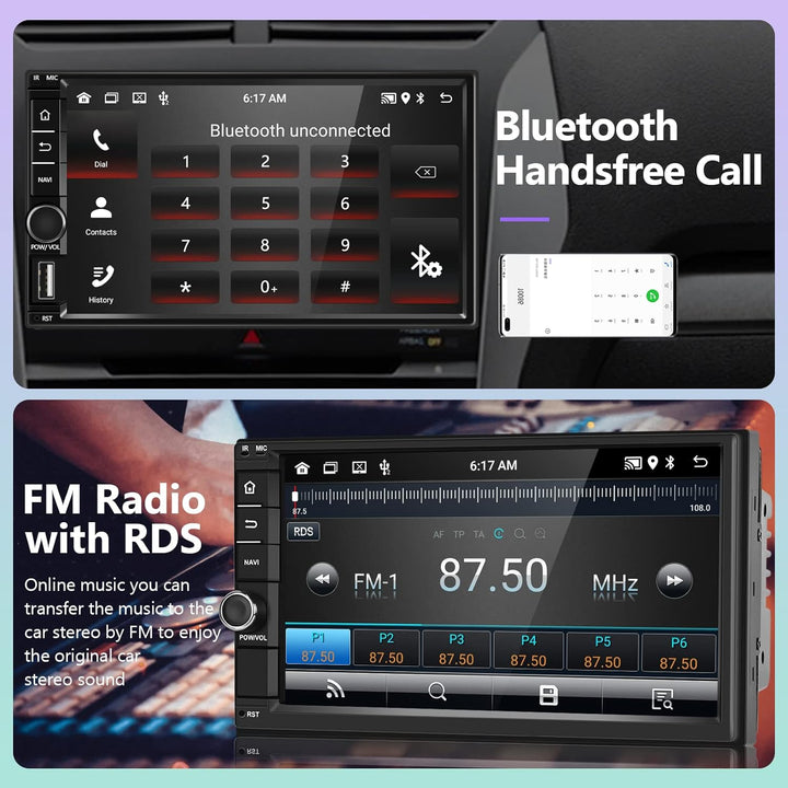 - 【Bluetooth-Autoradio mit FM/RDS-Radio】 Dieses Doppel-DIN-Auto Stereo mit Bluetooth unterstützt Bluetooth-Freisprechanrufe und Bluetooth-Musikwiedergabe. Voreingestelltes UKW-Autoradio mit einer grossen Auswahl an Kanälen (FM87.50-108.0MH), damit Sie unterwegs jederzeit Nachrichten, Musik und Programme hören können. Es gibt eine EQ-App, mit der Benutzer die Klangqualität einstellen können.