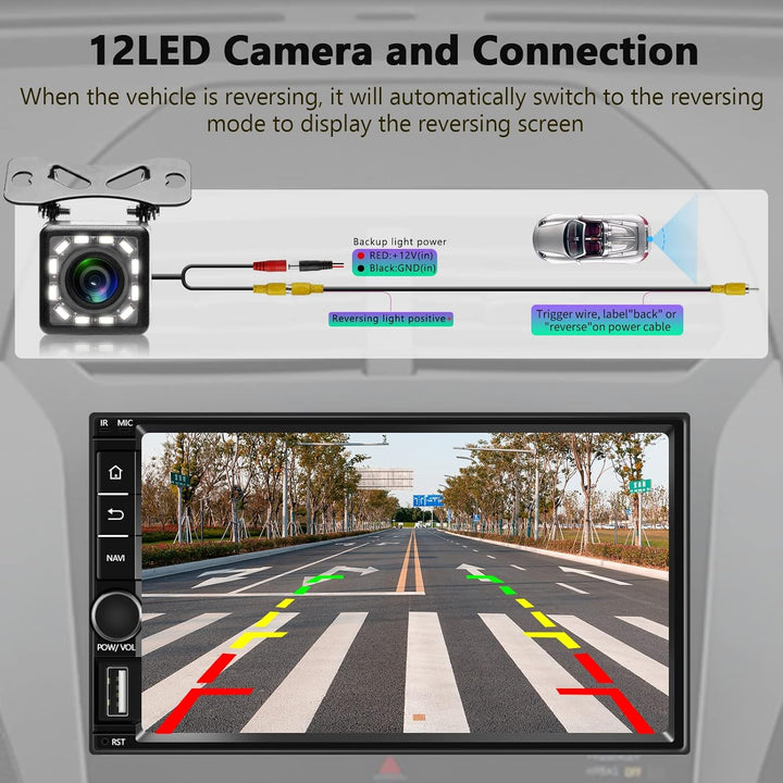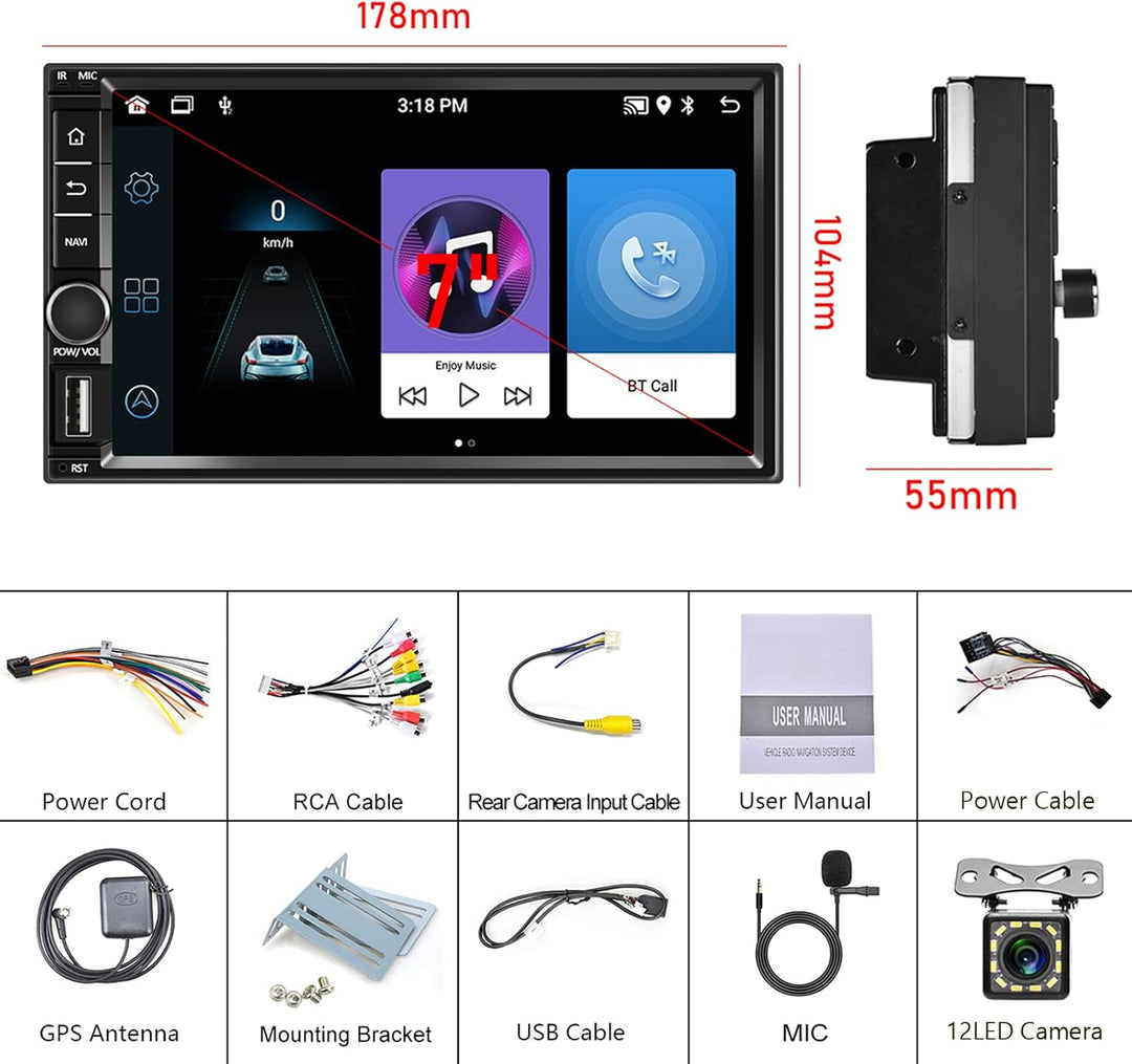 - 【7 Zoll Android 11 Autoradio mit Rückfahrkamera】 Quad-Core, 2 GB RAM + 32 GB ROM-Speicher sorgen für einen reibungsloseren Betrieb der Haupteinheit, hochwertiges kapazitives Touchscreen-Autoradio mit Rückfahrkamera und Dashcam-Eingang. Die Installationsgrösse beträgt 178 * 100 mm und passt für alle universellen 2-DIN-Auto-Mittelkonsolen.