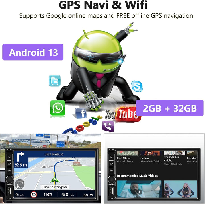 - 【Touchscreen-Autoradio mit GPS-Navigation + SWC】 Das 2-DIN-Autoradio mit GPS verfügt über eine Auflösung von 1024 * 600, was Ihnen eine empfindlichere Berührung und ein besseres visuelles Erlebnis bei der Verwendung der Navigation bietet. Es unterstützt Online- und Offline-Navigation (integriert). Mit eingebauten Gogle Maps können Benutzer auch andere Navigations-Apps auf das Android Car Radio herunterladen. Lenkradsteuerung unterstützen