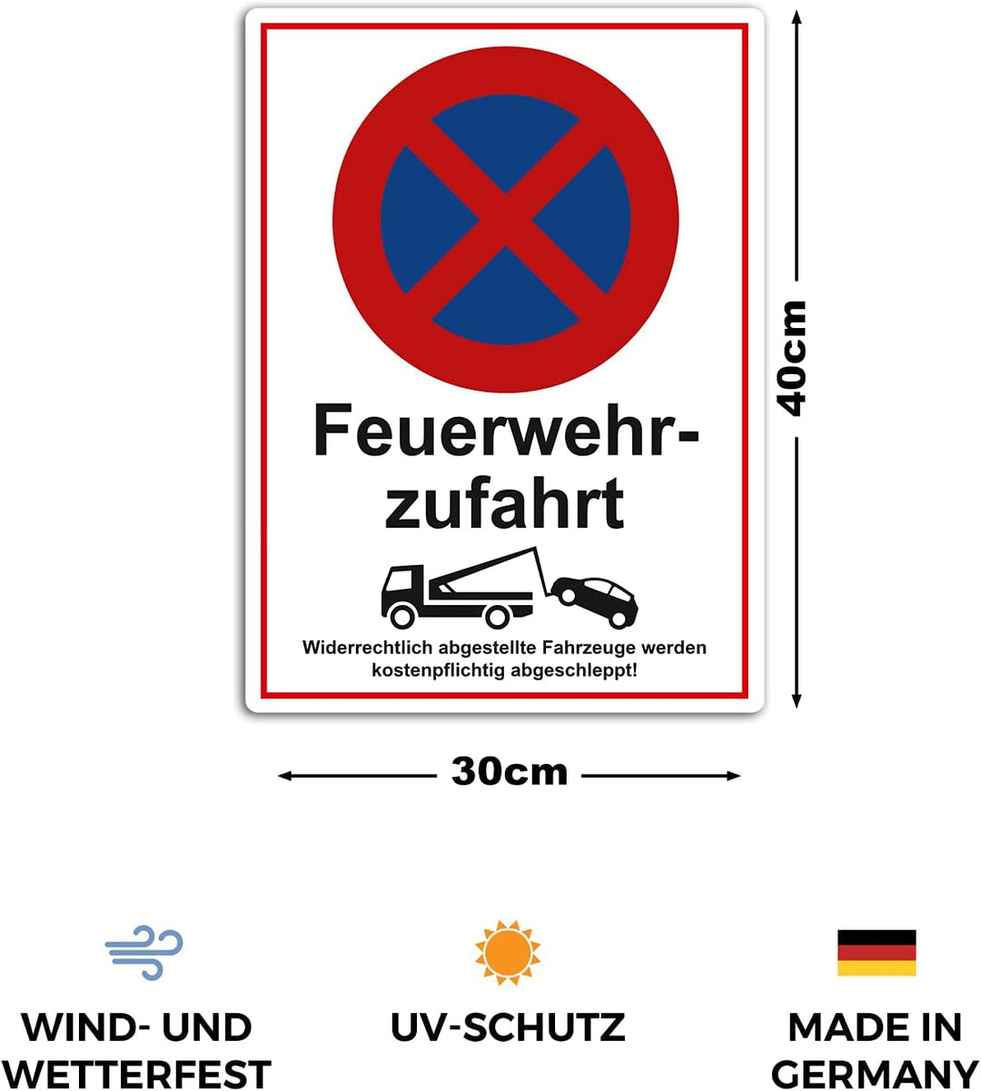- 2x Feuerwehrzufahrt freihalten Schild 30 x 40 cm aus stabiler PVC Hartschaumplatte 5 mm