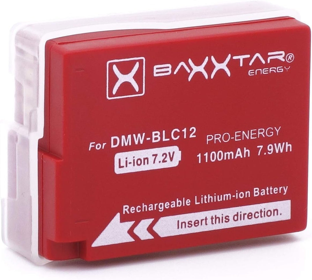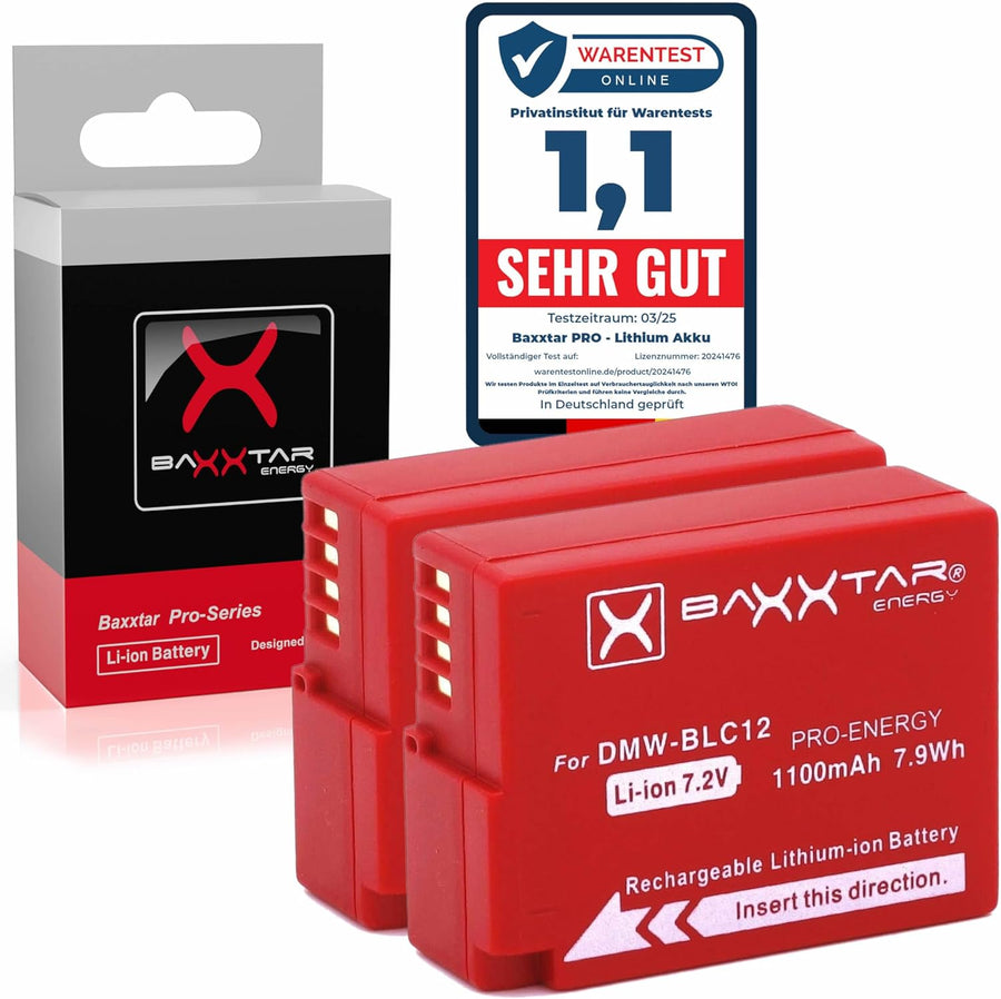 2X Baxxtar Pro Akku DMW-BLC12 E (1100mAh) Kompatibel mit Panasonic Lumix DC FZ1000 II G91 DMC GX8 G7