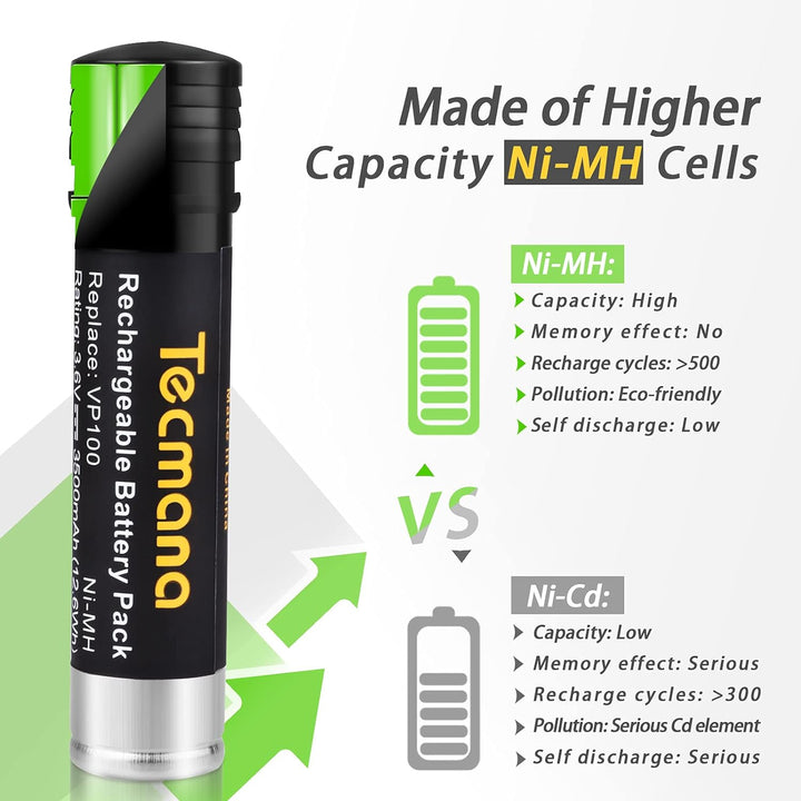 - Der Ni-MH-Akku ist gut mit Werkzeugen wie dem Original-Ni-Cd-Akku kompatibel und kann mit dem Original-Ni-Cd- oder Ni-MH-Ladegerät aufgeladen werden