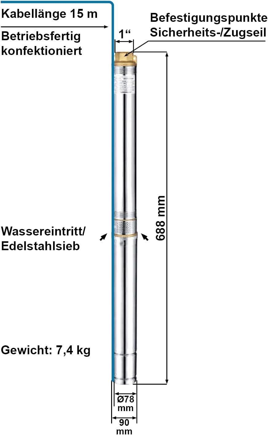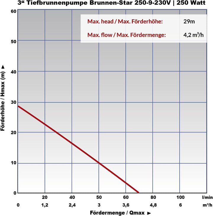 - Gute, leistungsstarke, solide EDELSTAHL-Qualitäts-Tiefbrunnenpumpe | max 2,9bar | max 4.200l/h