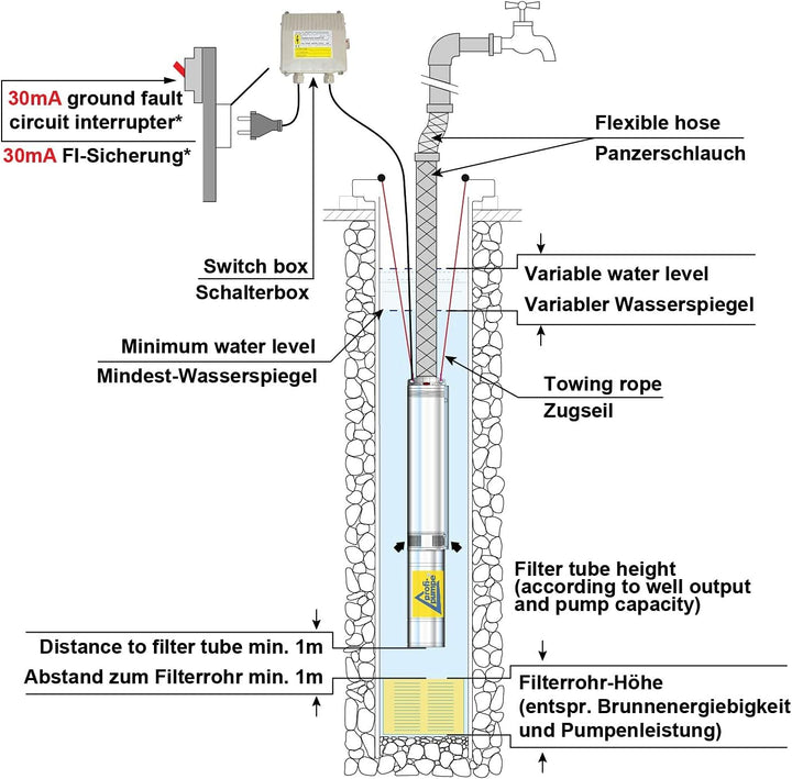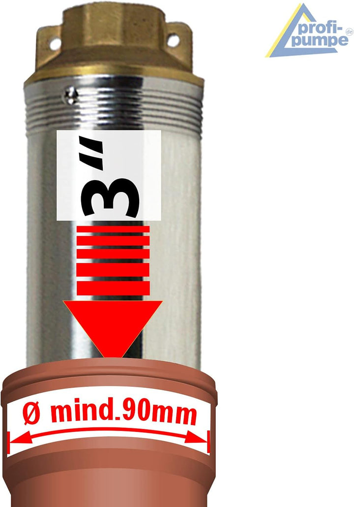 - 3 Zoll BRUNNENPUMPE mit SCHALTBOX inkl. INTEGRIERTEM KONDENSATOR für Tiefbrunnenbohrungen bis 70m Tiefe und ab 90mm Durchmesser