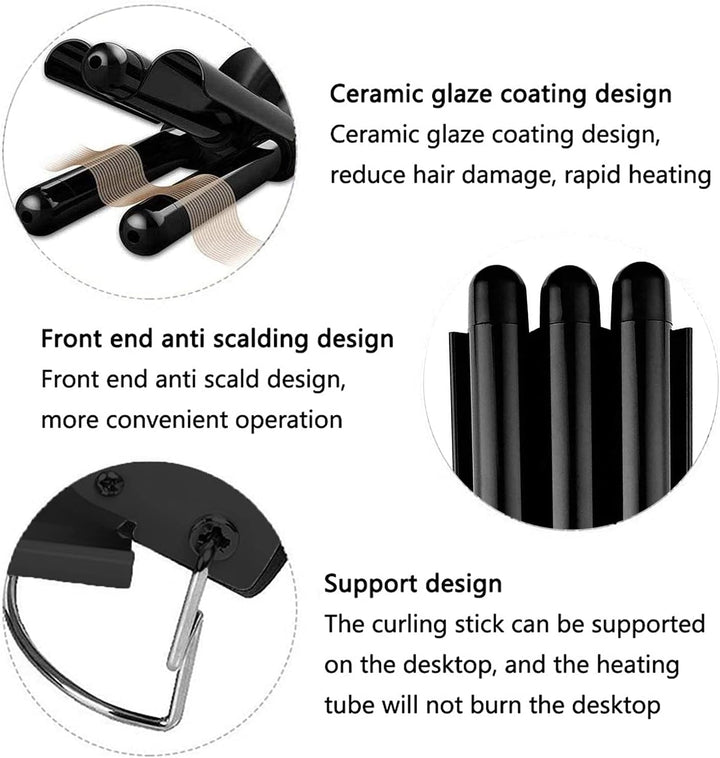 3 Fässer welleneisen, 25mm Lockenstab 3 stäben mit einstellbarer Temperatur, Welleisen Schnelle Heiz