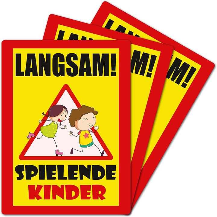 - 3x Langsam spielende Kinder Schild 30 x 40 cm aus stabiler PVC Hartschaumplatte 5 mm